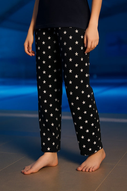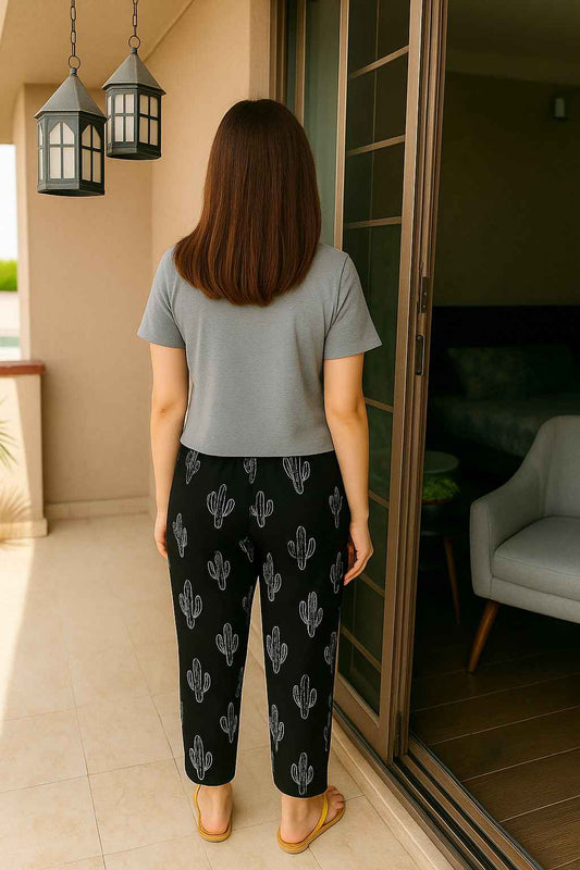 Black Capri Lining Printed Night Suit
