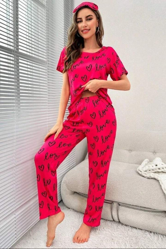 Heart Love Printed & Eye Band Night Suit