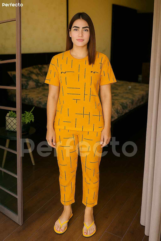 Yellow Printed Capri Night Suit