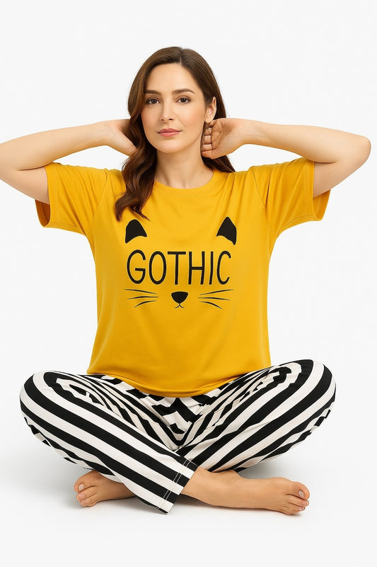 Yellow Gothic Printed Night Suit