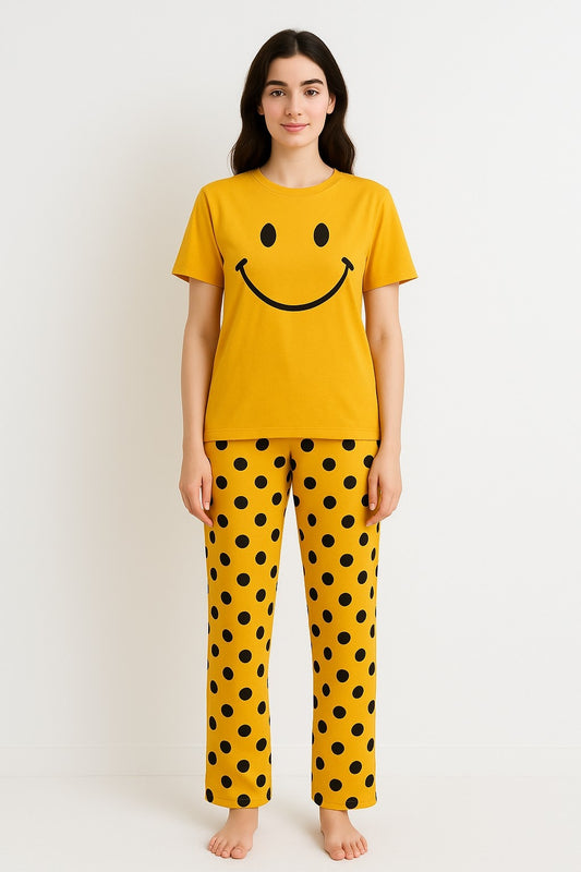 Yellow Smiley Printed Pajama Night Suit