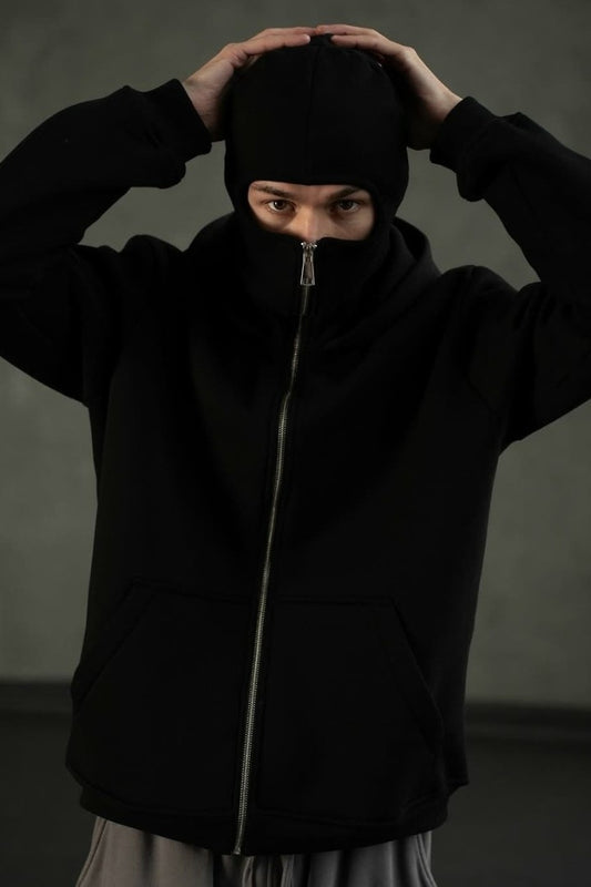 Grey Balaclava Ninja Zipper Hoodie Jacket