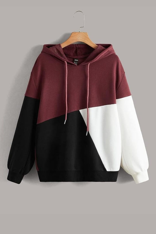 Maroon Black and White Cut and Sew Kangaroo Hoodie