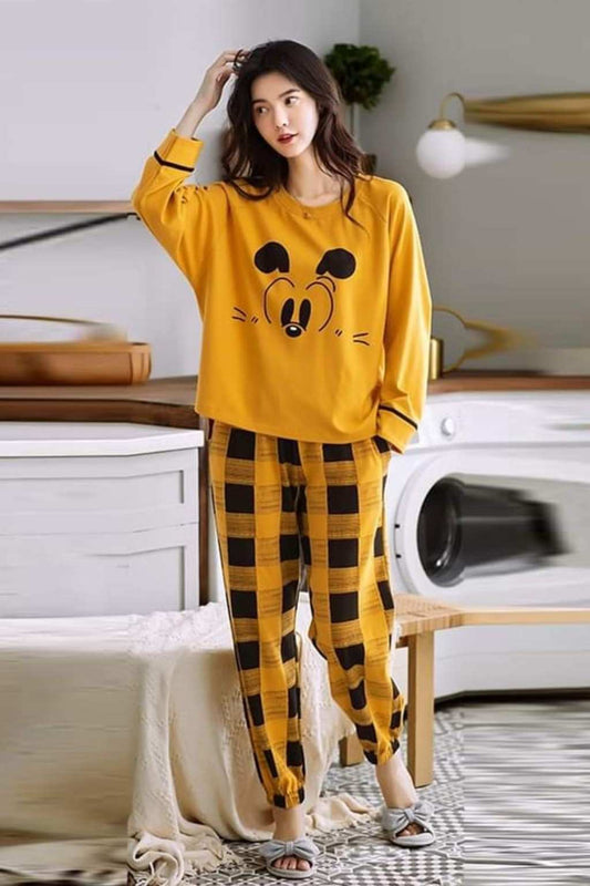 Mickey Mouse Yellow Printed Night Suit