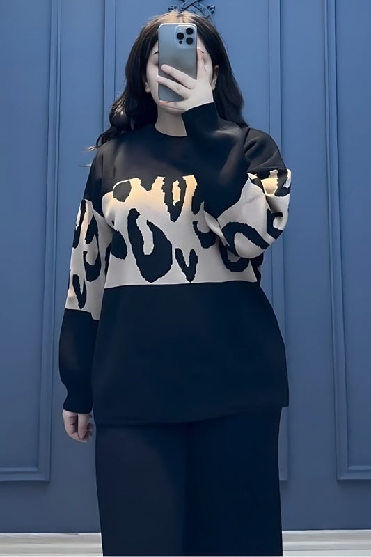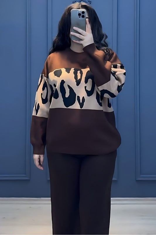 Cream Tiger Printed Winter Fleece Co-ords Set