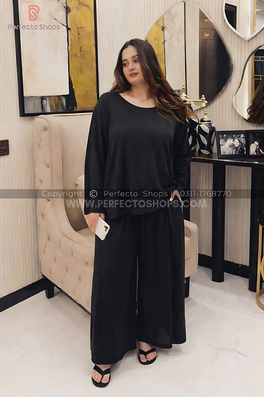 Black Plain Palazo Night Suit