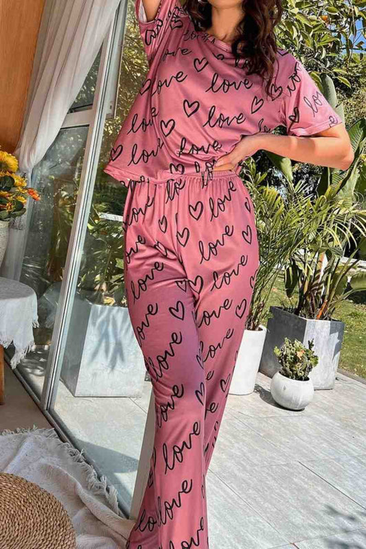 Love Heart T-Pink Printed Night Suit