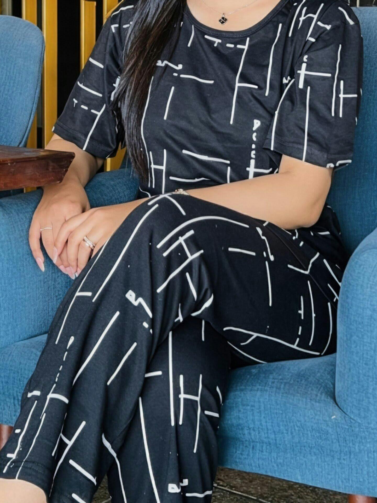 Black Capri Lining Printed Night Suit